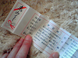 恋愛おみくじ… 大吉でた~!!! 内容があまりにも良すぎデース テンション上がりすぎて おみくじ持って帰ってきちゃったデース
